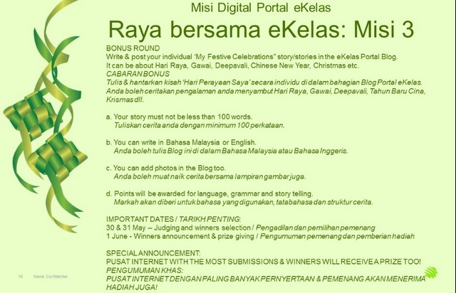 Slot keempat penyampaian hadiah kepada wakil jemputan serta acara cabutan bertuah untuk pengunjung yang hadir. Slot yang terakhir ialah aktiviti jualan lansung Hari Raya yang dibuka di dalam Pusat Internet. Jualan Baju Raya, tudung/shawl, kuih raya, baju kanak-kanak dan baju prelove.