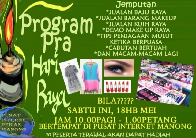 Pusat Internet Pekan Manong mengucapkan ribuan terima kasih kepada pengunjung yang hadir memeriahkan Program Pra Raya ini.